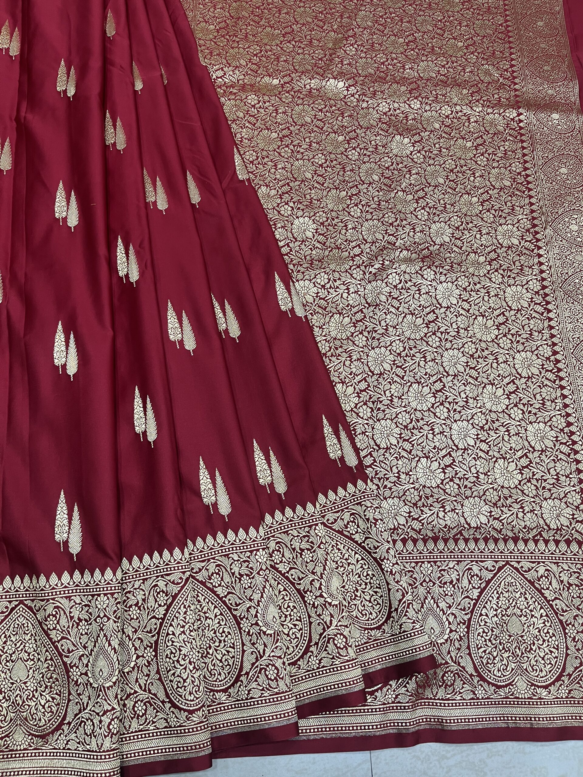• Work: Gold Zari Buti on Body with Heavy Zari Pallu