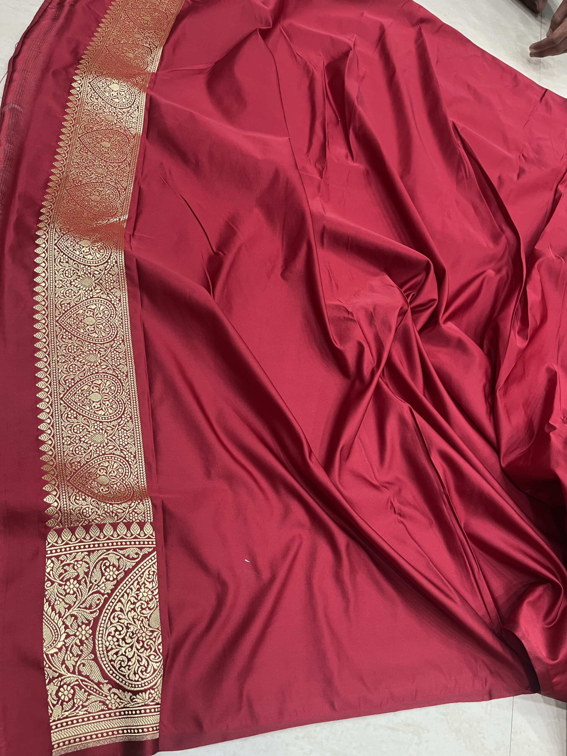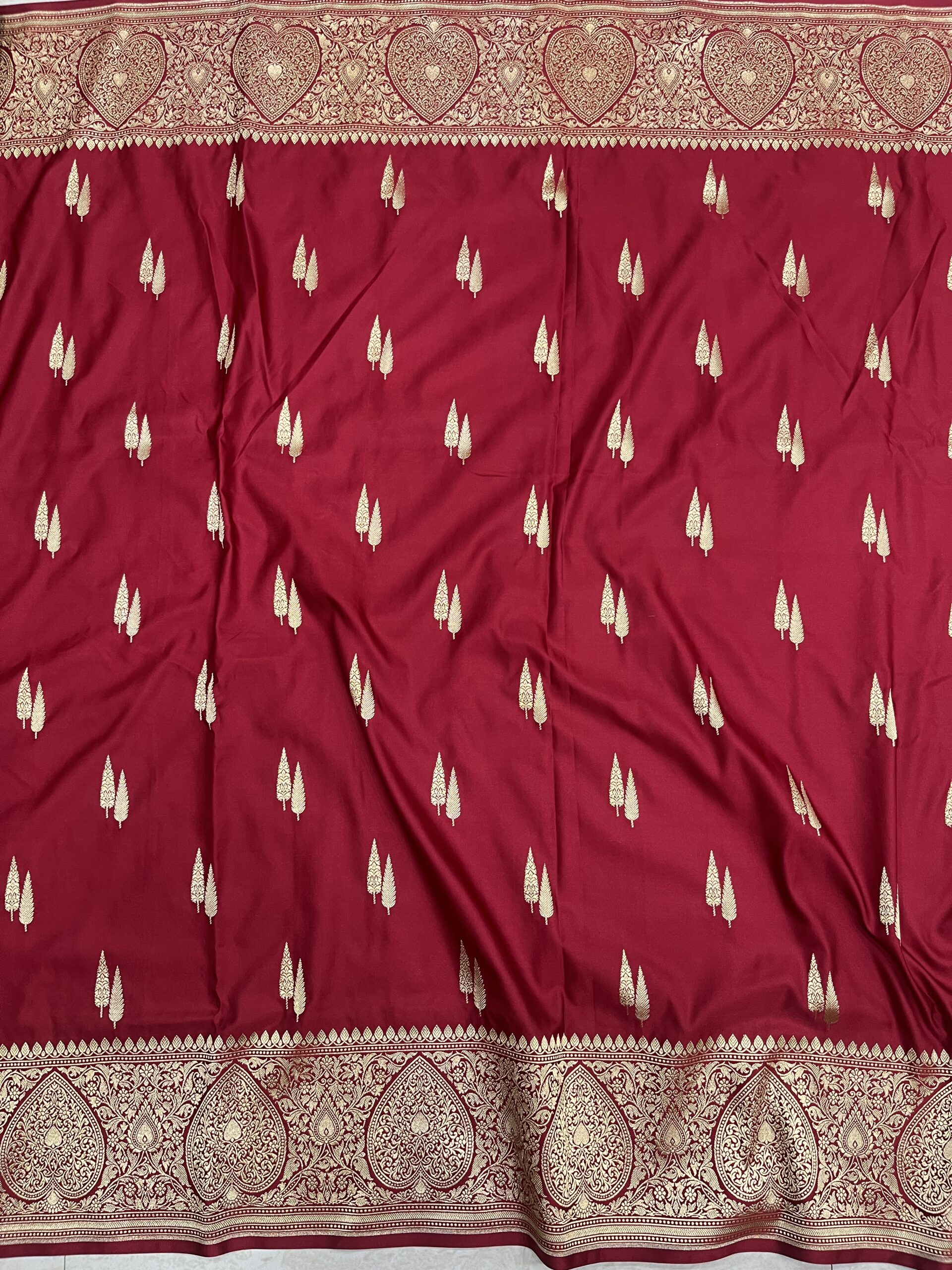 The rich red color symbolizes tradition and elegance, making it an ideal choice for bridal wear, weddings, receptions, and festive occasions. The smooth silk blend fabric provides a luxurious sheen, soft texture, and graceful drape.